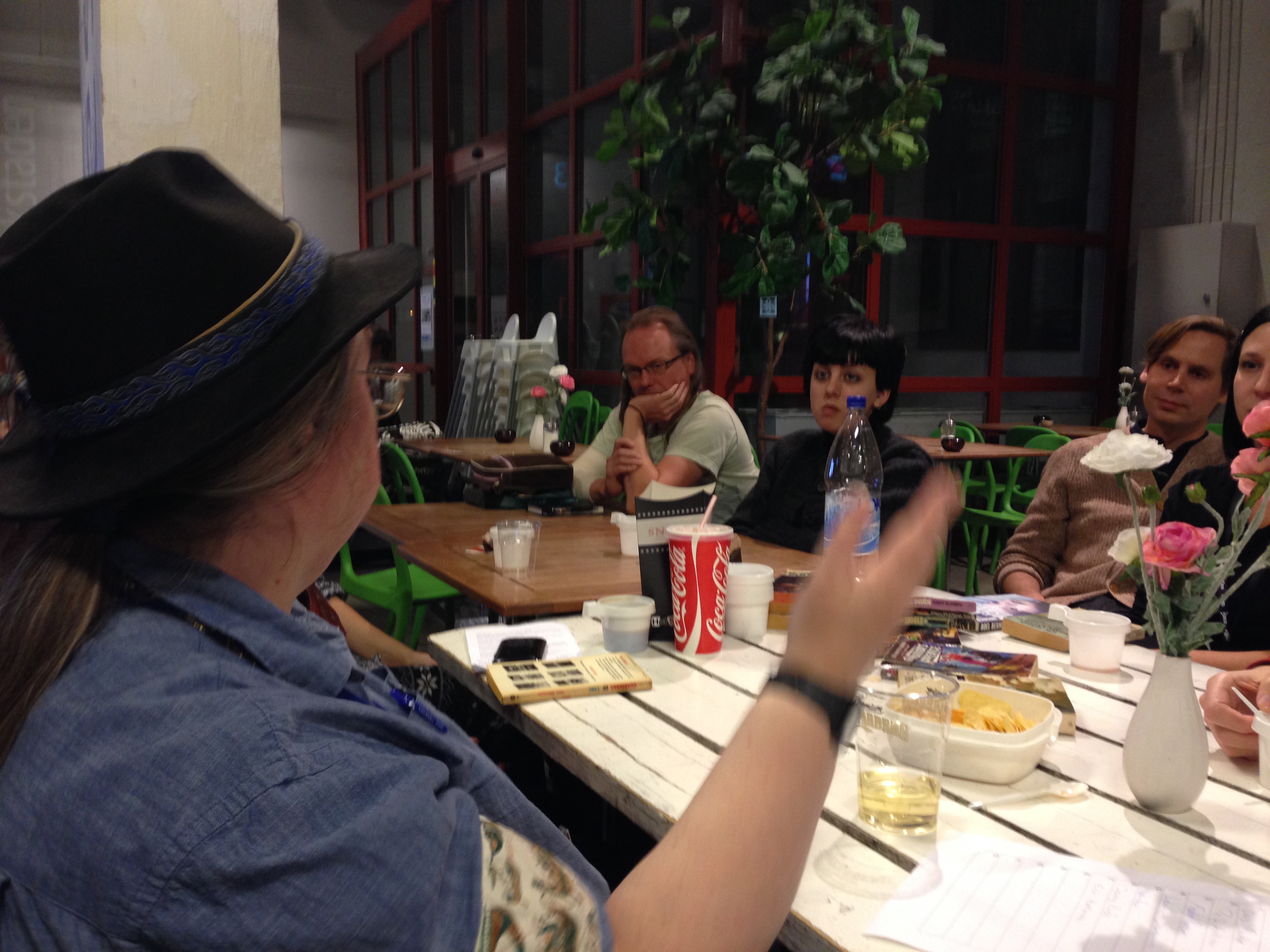Fikat blev den sista programpunkten för vår del på lördagen. Efter det stötte jag på Boel igen och lyckades få henne att signera sin bok åt mig. Detta resulterade i att vi hamnade i baren igen. Vansinnigt rolig diskussion om skrivande, spel och historia. Och annat. Efter detta bestämde sig ”vissa andra” för att det var dags att sova. Och det var det kanske, men jag tänkte att det finns ju möjlighet att göra sen. Mer om det sen…