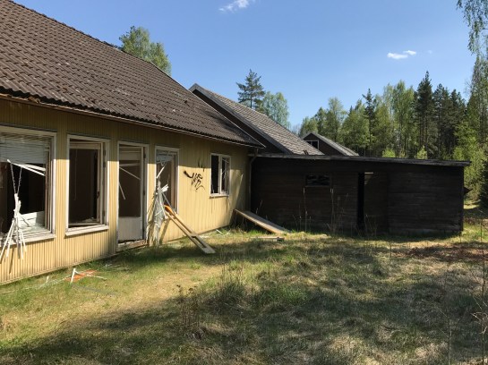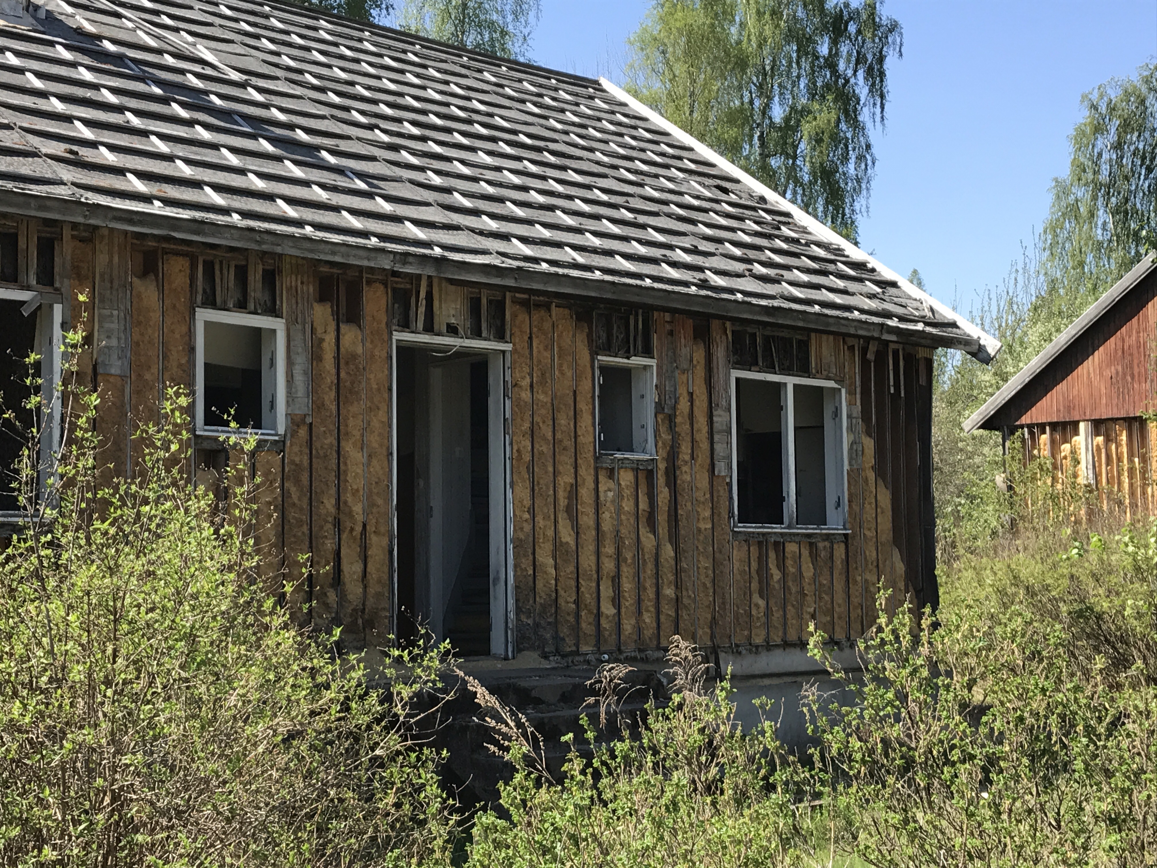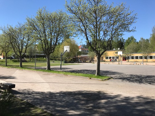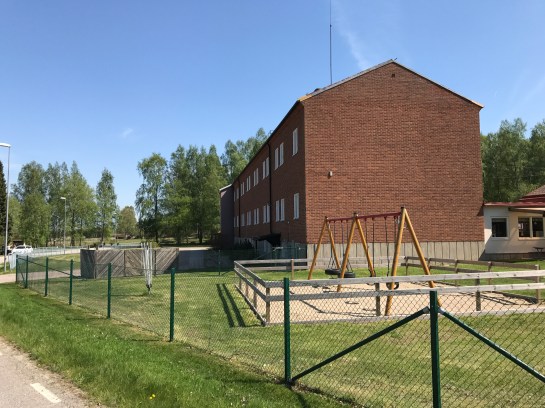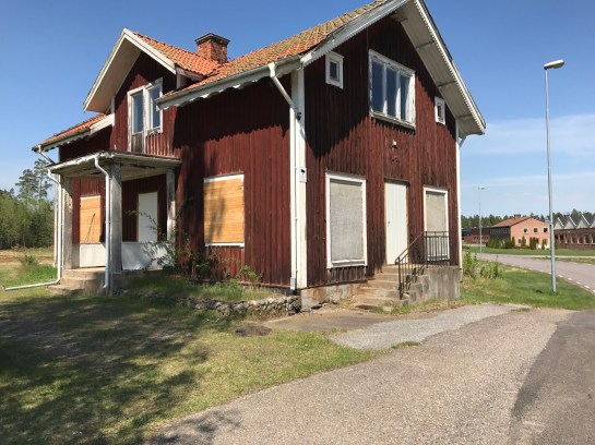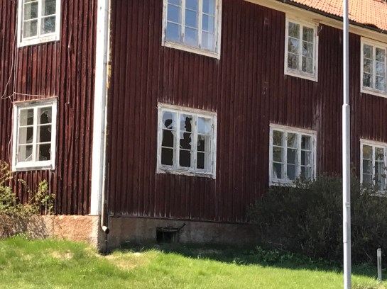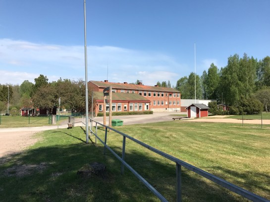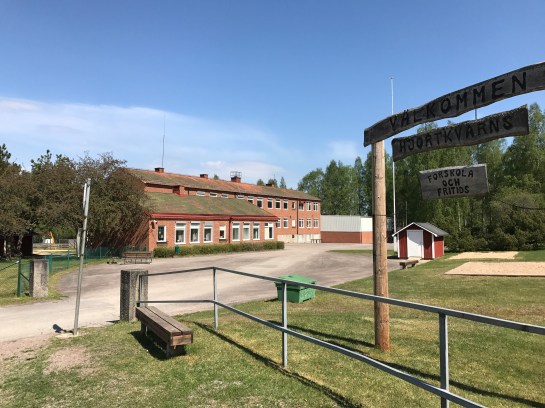 Fotade en del på både dit- och hemvägen. Mest för att ha som stöd för mina mentala anteckningar. Insåg att jag måste skriva om en scen också i det som jag redan skrivit. Hjortkvarns skola har nämligen ingen slöjdbarack.