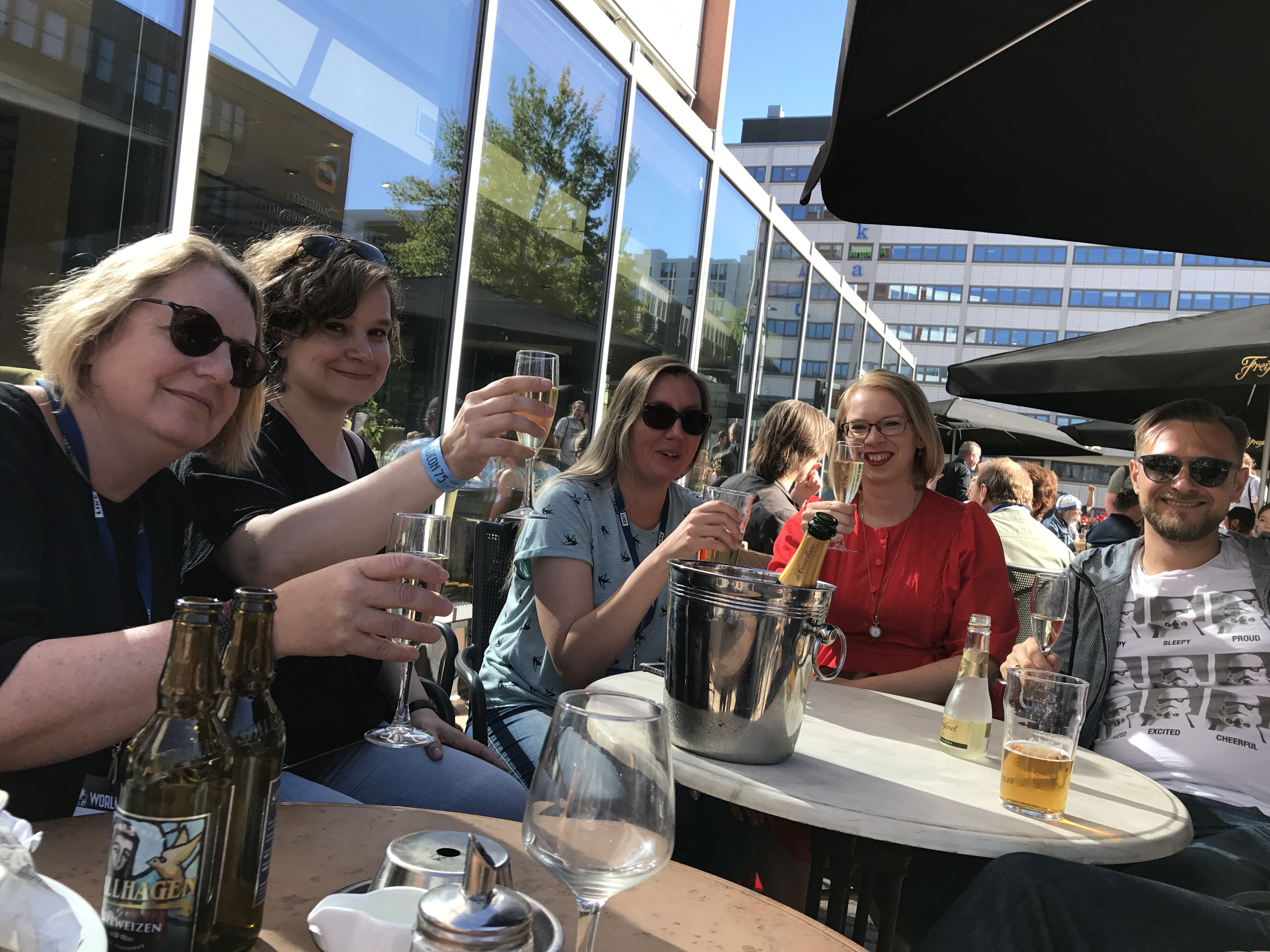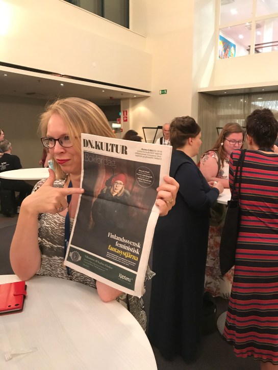 Dels deltog jag i en diskussiongrupp om utgivning av nordisk fantastik – samarbetsmöjligheter och erfarenhetsutbyte. Jättespännande, inspirerande och kul. Och det ledde också till en del intressanta samtal även efteråt.